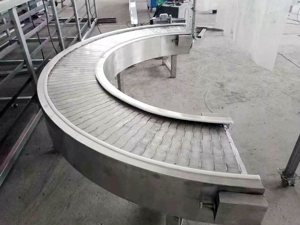 Product introduction转弯输送机结构形式有30度转弯输送机、45度转弯输送机、90度转弯输送机、180度转弯输送机,能满足各种转弯输送的工艺要求。转弯皮带机输送带有PVC、PU等多种材质,转弯链板输送机,转弯链网式输送机,转弯滚筒式输送机等。除用于普通物料的输送外,还可满足耐油、耐腐蚀、防静电等有特殊要求物料的输送。采用专用的食品级输送带﹐可满足食品、制药、日用化工等行业的要求。输送平稳,物料与输送带间没有相对运动,能够避免对输送物的损坏。与其它输送机相比噪音较小,适合于工作环境要求比较安静的场合。结构简单、便于维护;能耗较小,使用成本低。